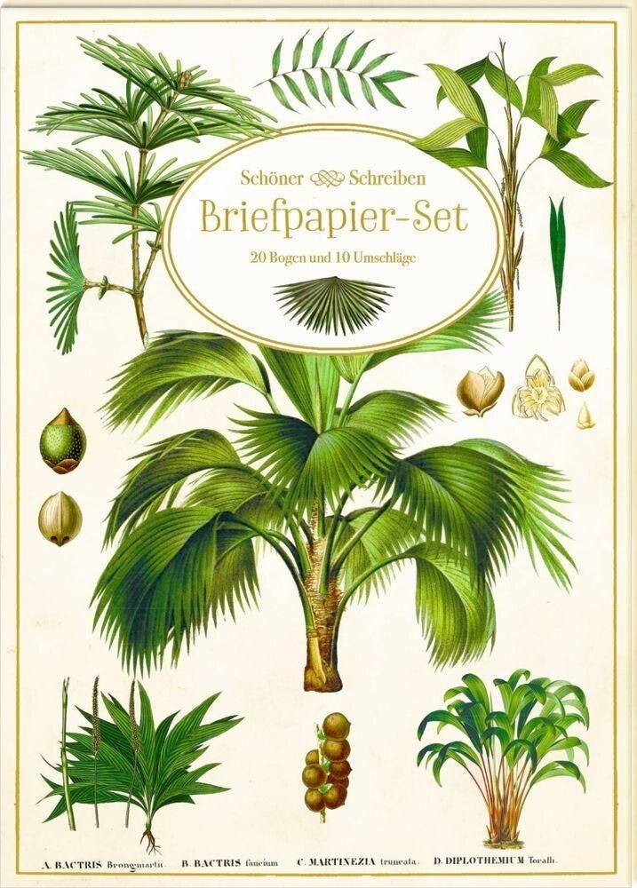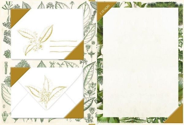 Dit prachtige briefpapier "Planten" is ideaal voor hele bijzondere brieven aan dierbaren. Er zijn in totaal 20 vormgegeven vellen (DIN A4) en 10 bijpassende enveloppen. Alle onderdelen van deze set zijn handig en veilig verpakt in een elegante map met een afwerking van goudfolie.
